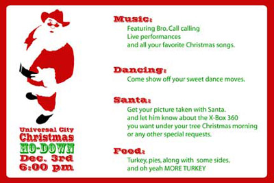 Merry Christmas: Our Family Christmas card. This card is an illustration fo my daughter done in illustrator. Christmas Ho-Down: A flyer done to advertise for an anual Christmas party for a local church. |